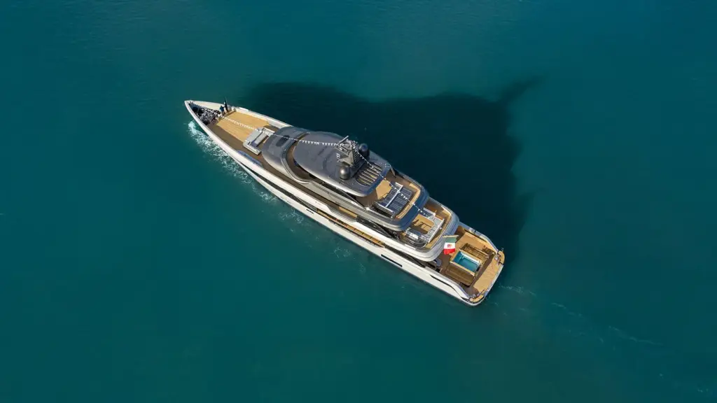 Two distinct inside schemes are supplied: an in-house proposal from Admiral Centro Stile that prioritises clear strains and pure supplies, and a Piredda & Companions package deal that makes use of contrasting supplies, sculptural accents and richer textures. Styling all through the yacht leans on heat tones and wooden finishes meant to ship a welcoming, relaxed environment with out detracting from purposeful circulation.