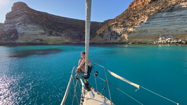 We had been anchored over deep water and a notoriously rocky seabed on the East finish of Lampedusa. With the wind shortly rising and dusk approaching, each boat was making for his or her residence berth. We pulled up the transom ladder and bought set to comply with.