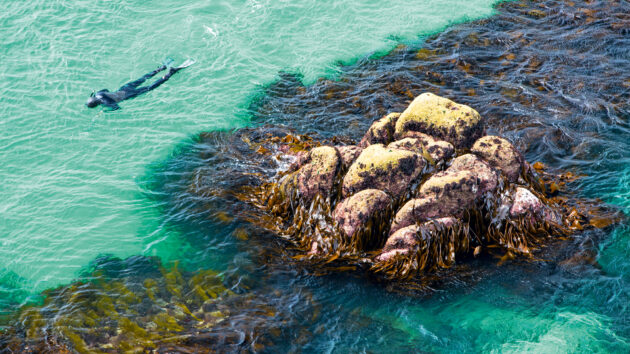 Free diving over underwater kelp forest in Southern California. Photograph: Cavan Photos / Alamy.